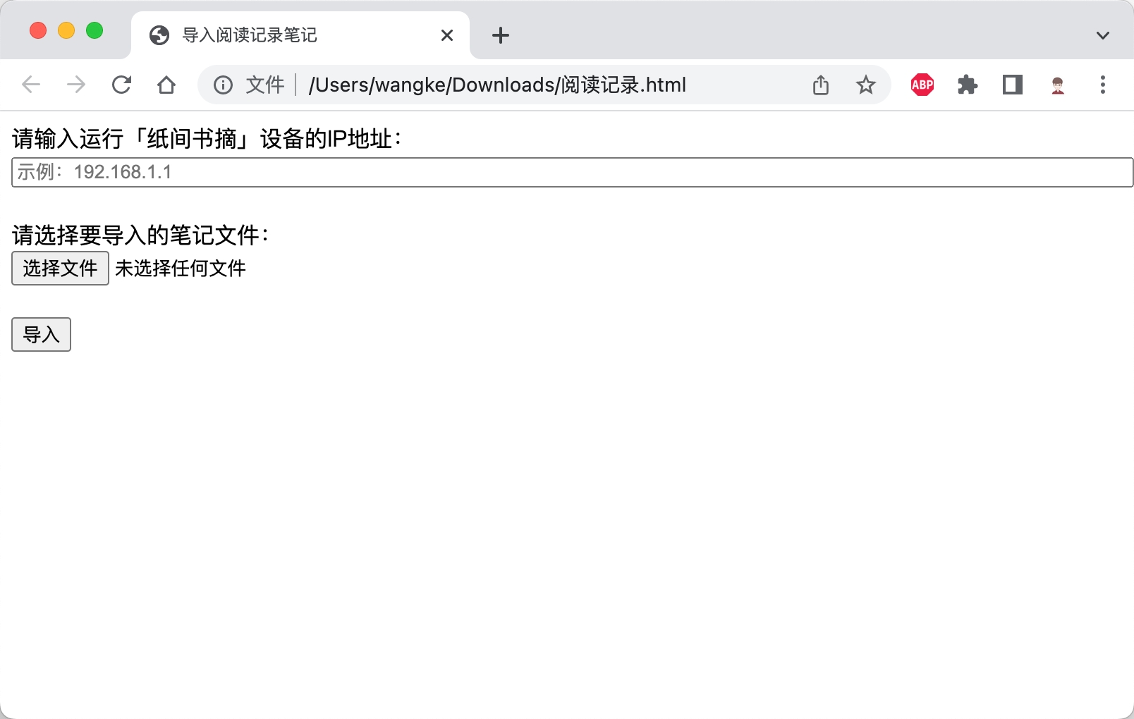 按照界面提示依次输入设备的 ip 地址,在选择好需要导入的 TXT 笔记文件后,点击「导入」即可。