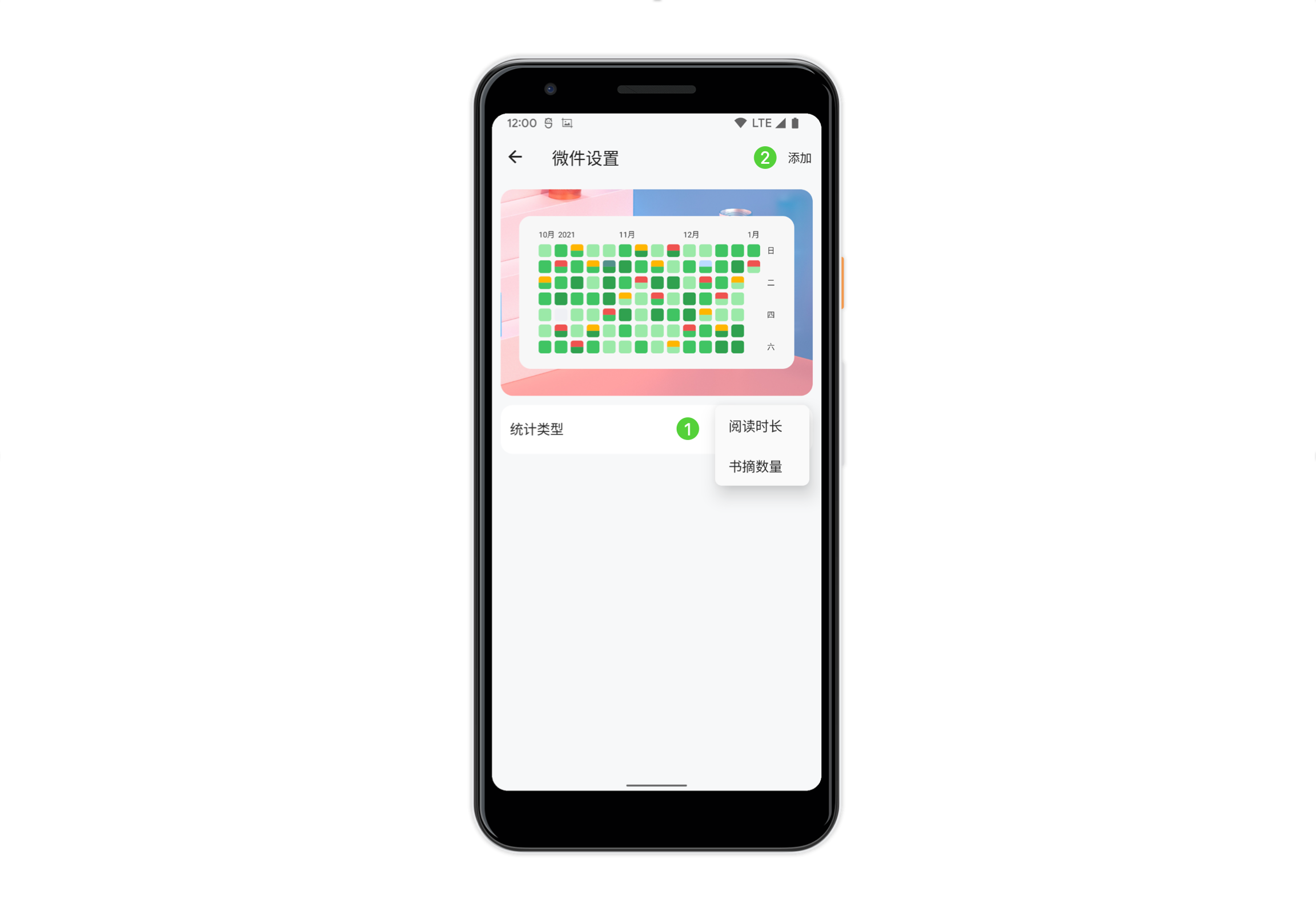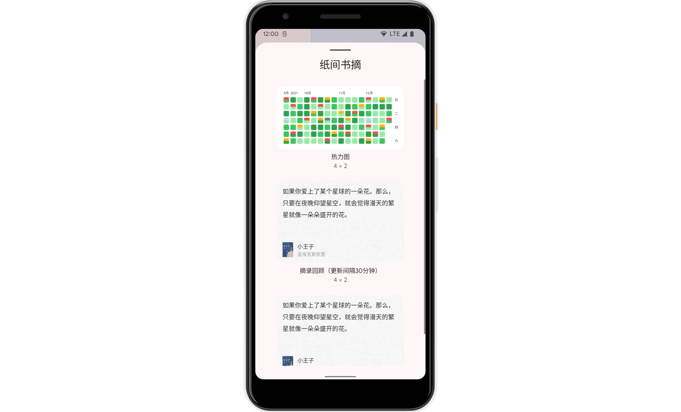 书摘回顾小组件在添加到桌面前,你可以对以下内容进行自定义: